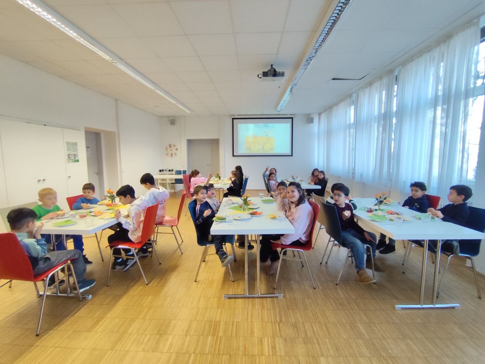 Die Erstklässler*innen durften sich über ein Frühstück freuen, das von den Klassensprecher*innen der 3. und 4. Klassen zusammen mit Frau Laschet organisiert wurde.