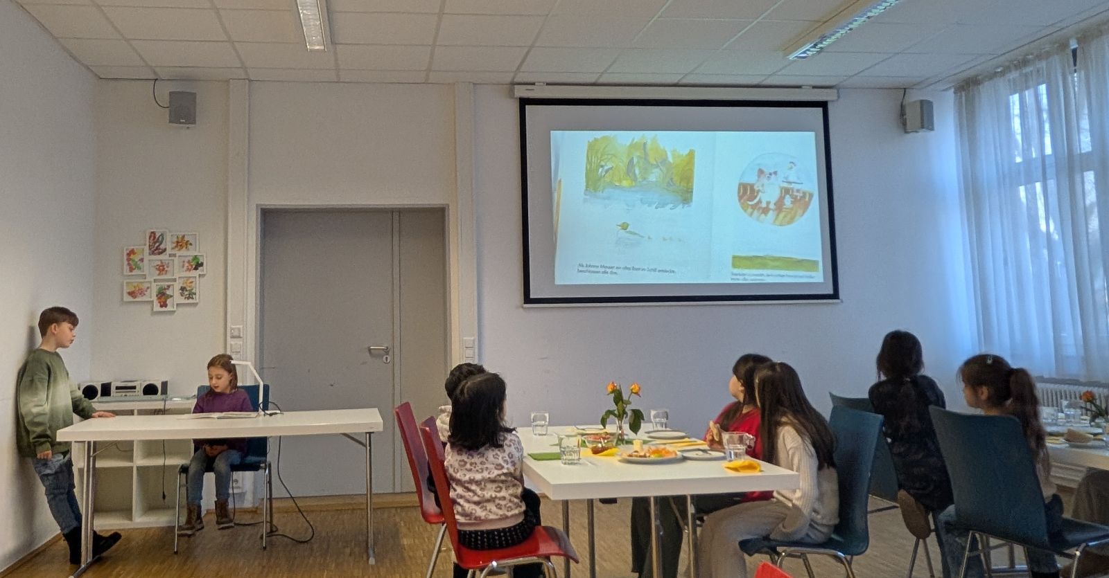 Die Klassensprecher*innen hatten die Tische liebevoll vorbereitet und die Erstklässler*innen mit frischen Brötchen und Getränken bedient und umsorgt. Zum Abschluss lasen die Großen noch eine Geschichte über Freundschaft vor.